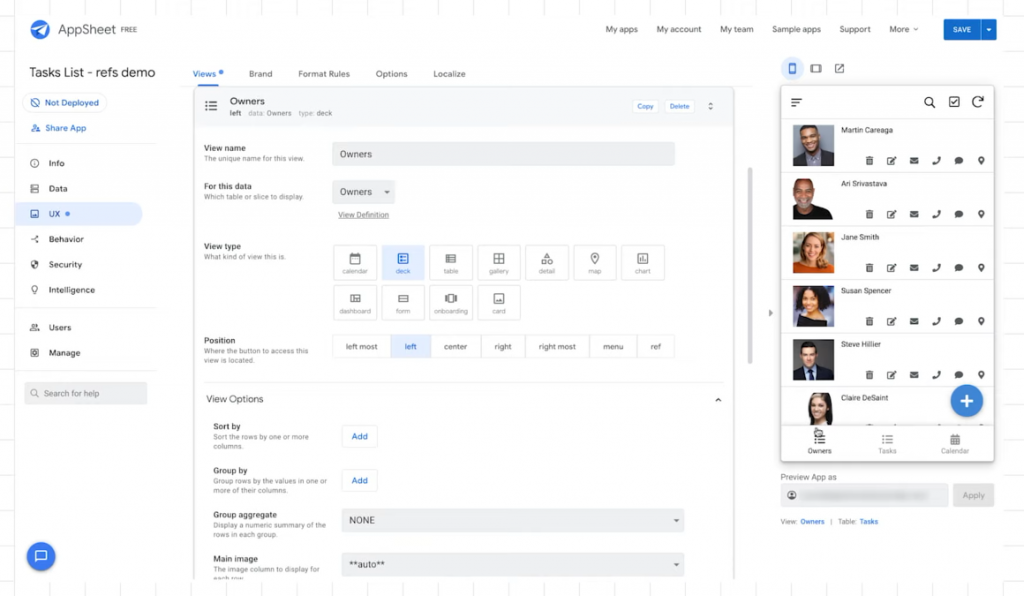 AppSheet se integra con Google Sheets, Excel, Salesforce y otras populares fuentes de datos. Ofrece una interfaz de usuario muy amigable que hace posible que cualquier usuario, sin conocimientos de programación, pueda crear apps web completas con mucha rapidez.