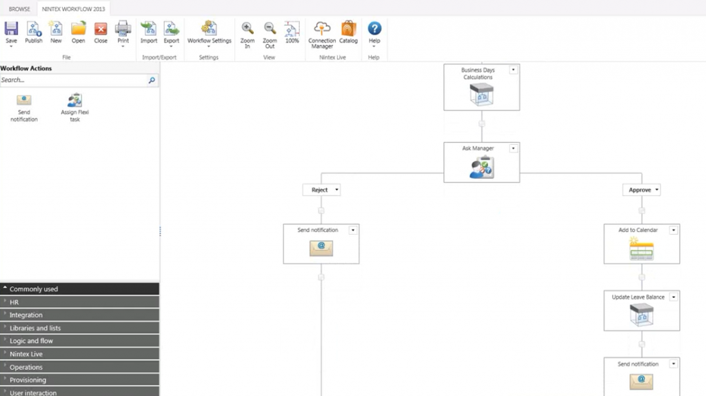 Nintex adopta la filosofía de modelado de procesos para automatizar aplicaciones rápidamente y sin programar. La plataforma se encarga del mapeo de procesos, la automatización de flujos de trabajo, automatización de procesos robotizados, generación de documentos/formularios/apps y análisis estadístico de los procesos. Todo ello por medio de una interfaz de usuario intuitiva tipo drag-and-drop.