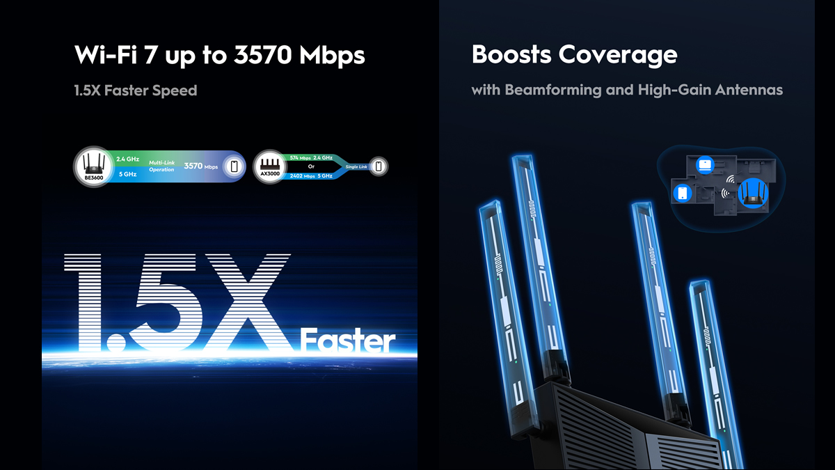 El WR3600H incorpora la tecnología Wi-Fi 7 de doble banda (2,4 GHz y 5 GHz) con Multi-Link Operation (MLO), que permite alcanzar velocidades de hasta 3570 Mbps combinados –2882 Mbps en la banda de 5 GHz y 688 Mbps en 2,4 GHz– y mantener conexiones estables incluso bajo alta demanda. En tanto, su procesador Quad-Core ARM a 2 GHz y 512 MB de RAM permiten una respuesta fluida durante la navegación, el streaming y el gaming.